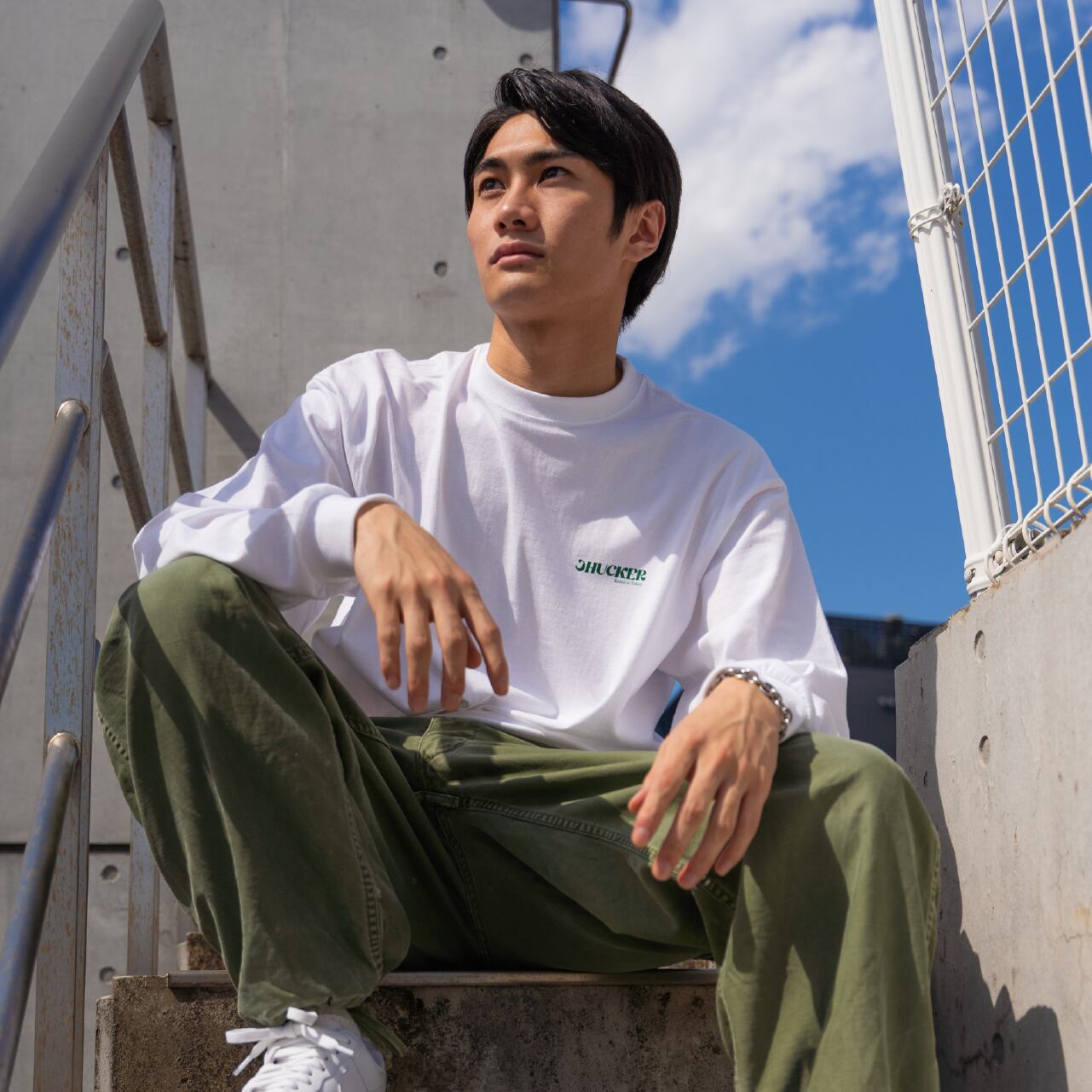 サイジングによって、綺麗めにもストリートにも幅が利くシンプルなロンTです。