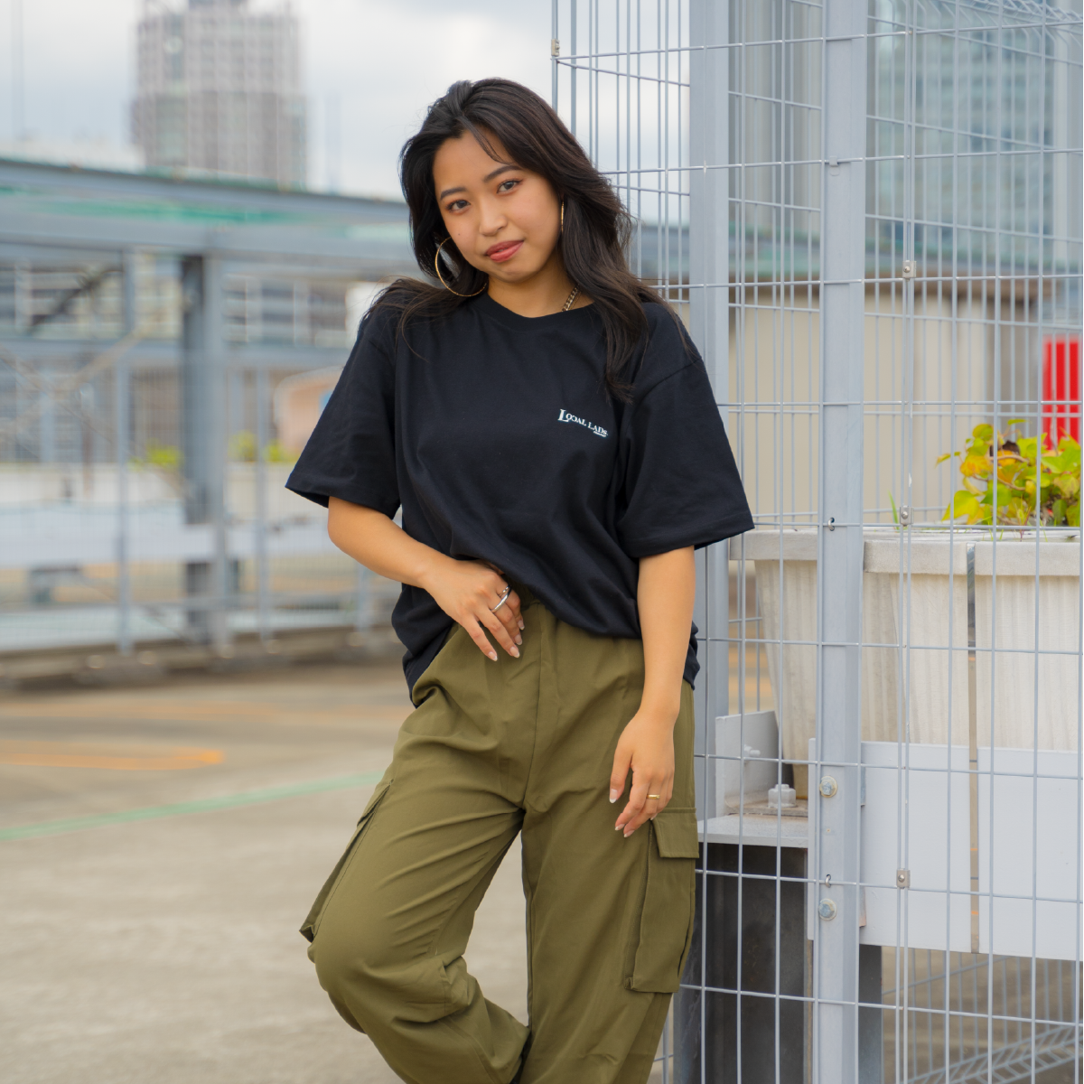 サイズやコーデによって、ストリートにも綺麗めコーデにも使える万能Tシャツです。